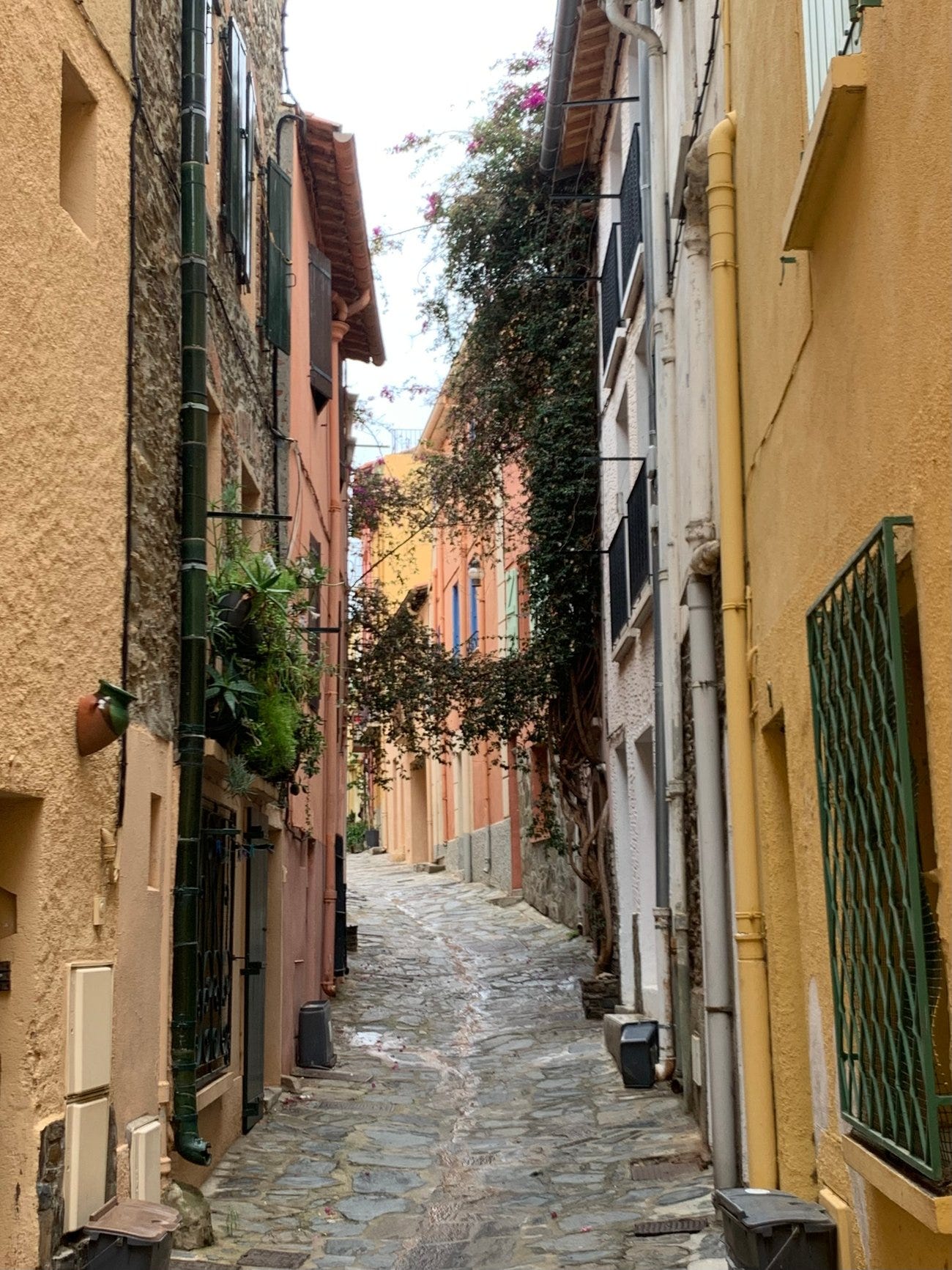 When I get to the beach, I spread my towel and read Giovanni’s Room and even go into the water—a thing I can rarely be found doing in the States—which is slightly chilly, but like bathwater compared to the Pacific Ocean beaches of Los Angeles, where I was last on a beach. When I’m done because the sun is fading—weather changes quickly in Collioure—or because I’m taking part in some kind of (fabulous) organized activity like wine-tasting that Karen and her husband, Jerrod, have organized, I carry my book and my towel back up the winding Rue du Soleil to my apartment, still without shoes. Mostly, the Rue du Soleil is quiet, and I pass at most a few people on my way up the inclined streets, but at first, I am mildly worried one of the townspeople will notice that I’m shoeless and give me a witheringly disapproving French look...